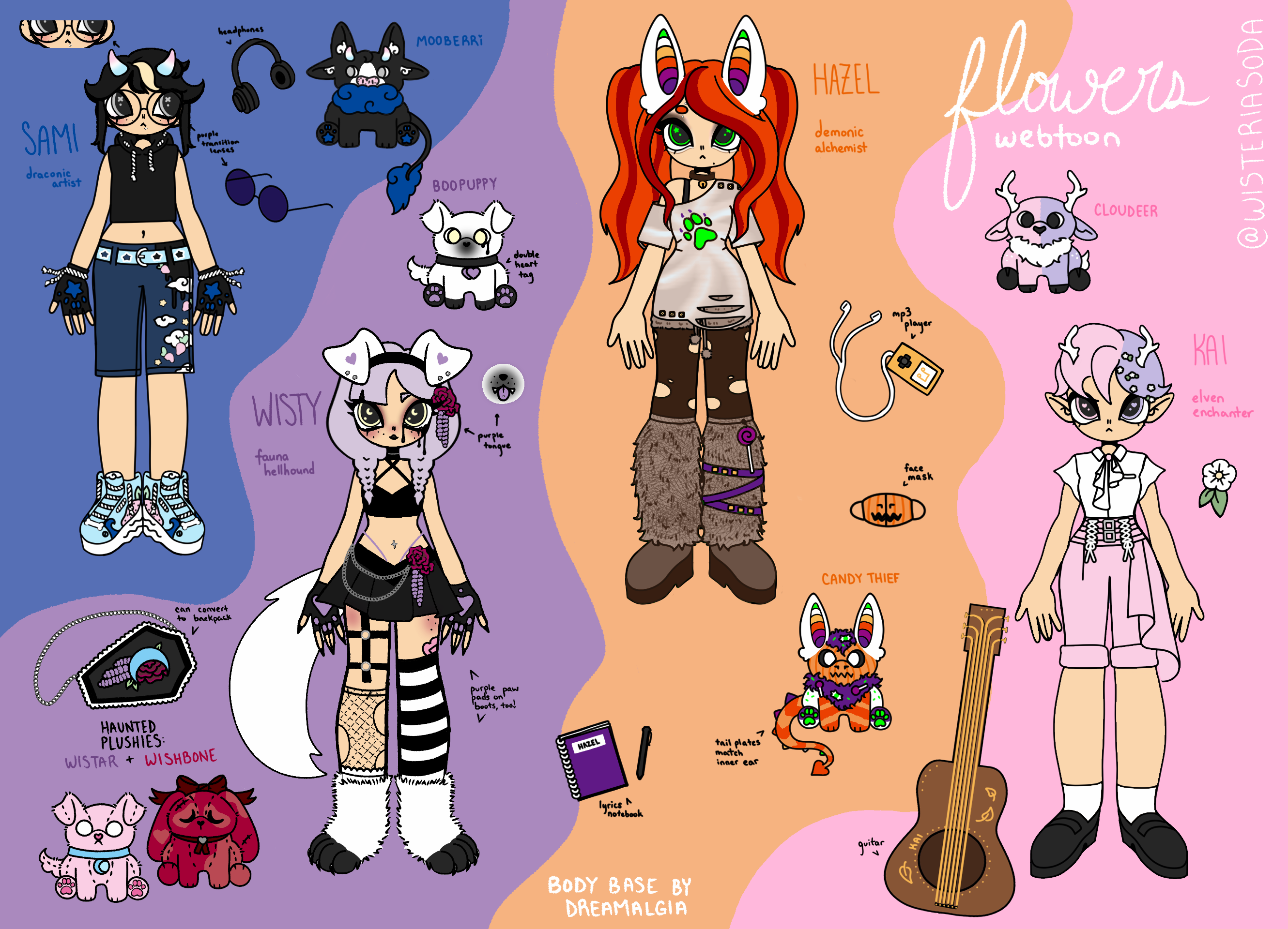 Wisteria Soda, better known as Wisty or Sami, is a demiboy artist who enjoys alt subcultures, macabre story-driven games, BL webtoons, Terraria, and Spirit City.Demiboy, for Sami, means they identify as a nonbinary boy. Sami's pronouns are he/him and they/them. Any compliments are appreciated, whether masculine, neutral, or feminine ~